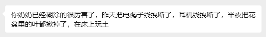 她说她一到暑假寒假就特别难受,因为我大爷他们会把我奶奶送过来。